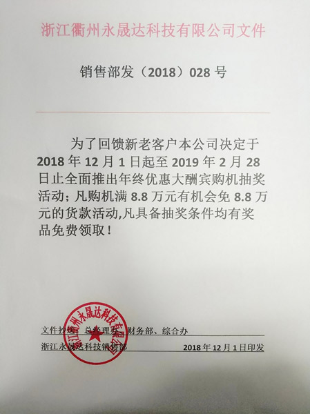 • 永晟達年終優惠大酬賓抽獎活動,感恩回饋新老客戶!2018-11-20